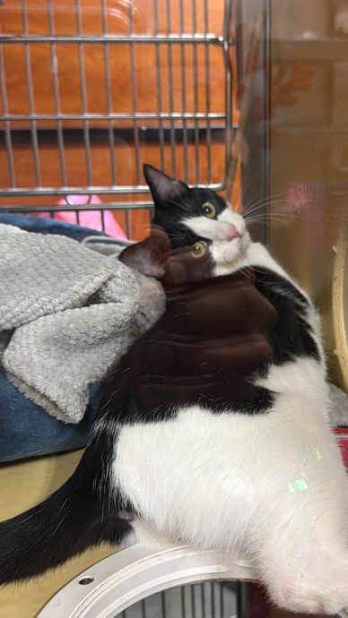 My name is hewey, I'm 7 months old, fully vetted and looking for my forever home. I am dog and cat friendly, I love cuddles and love humans. I'm a total cuddle bug.